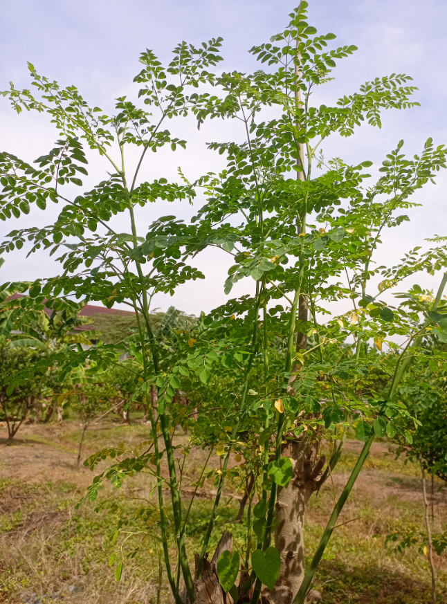 Di kebun belakang rumah juga tumbuh tumbuhan kelor ini. Menjulang tinggi, bahkan cenderung lebih cepat juga dia tumbuhnya.